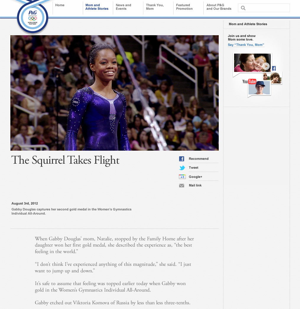 Create an online Hub to house all of P&G's Olympic content created in relation to the Proud Sponsor of Moms campaign.
